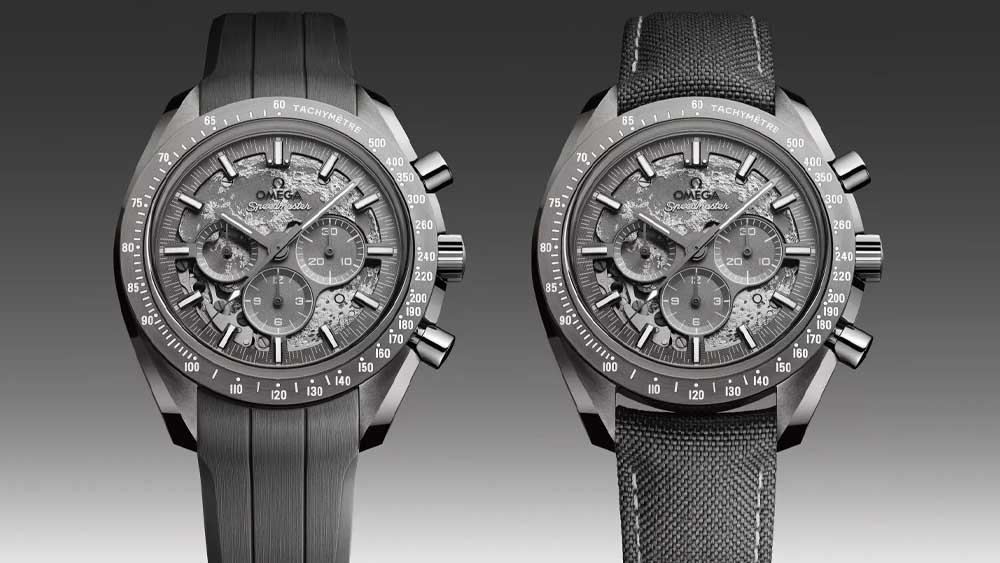 • Un’edizione commemorativa dedicata alla missione Apollo 8, con quadrante e fondello che riproducono la superficie lunare grazie a incisioni laser. Il lato visibile della Luna si mostra sul quadrante scheletrato, mentre quello nascosto appare sul retro, animato dal movimento Co-Axial Master Chronometer Calibre 3869.